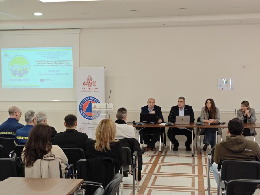 Με επιτυχία ολοκληρώθηκαν οι εργασίες του 1ου συμμετοχικού εργαστηρίου που διοργάνωσε η Περιφέρεια Ανατολικής Μακεδονίας και Θράκης και η Αυτοτελής Διεύθυνση Πολιτικής Προστασίας Π.Α.Μ.Θ., ως δικαιούχος του έργου «Εναρμονισμένα πρωτόκολλα για διασυνοριακή περιβαλλοντική εκτίμηση επιπτώσεων και διαχείριση έκτακτων αναγκών» (HARMONY), το οποίο υλοποιείται στο πλαίσιο του Προγράμματος Horizon Europe.