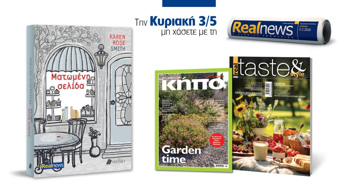 Αυτή την Κυριακή με τη Realnews: Ματωμένη σελίδα, της Karen Rose Smith – Μαζί real taste & style και Μαστορέματα – Αφιέρωμα Κήπος Enikos Newsroom 07:08, Δευτέρα 27 Απριλίου 2026 Media & Τηλεοπτικά Νέα Αυτή την Κυριακή με τη Realnews: Ματωμένη σελίδα, της Karen Rose Smith – Μαζί real taste & style και Μαστορέματα – Αφιέρωμα Κήπος