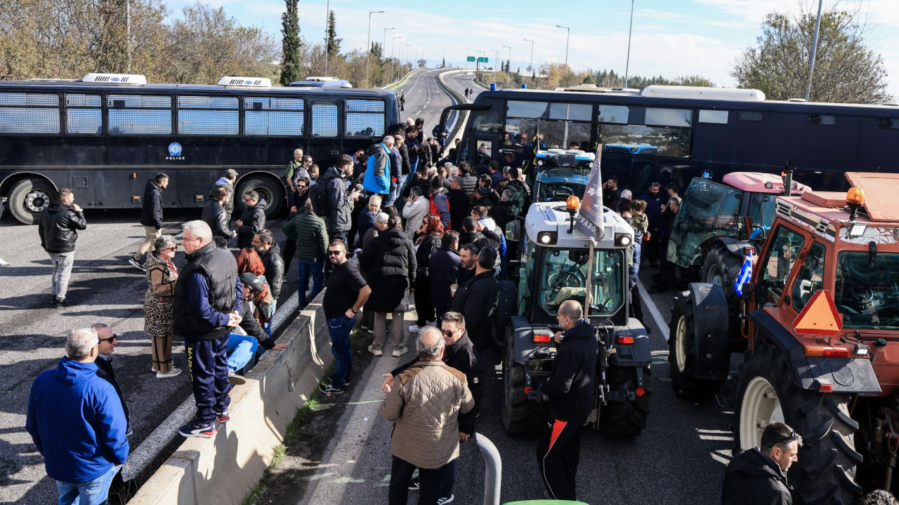 Ένταση σημειώθηκε όταν οι αγρότες αιφνιδίασαν τους αστυνομικούς και έβγαλαν τα τρακτέρ στην εθνική οδό. Μάλιστα, έδεσαν με ιμάντα όχημα της ΕΛΑΣ για να σπάσουν τον φραγμό.