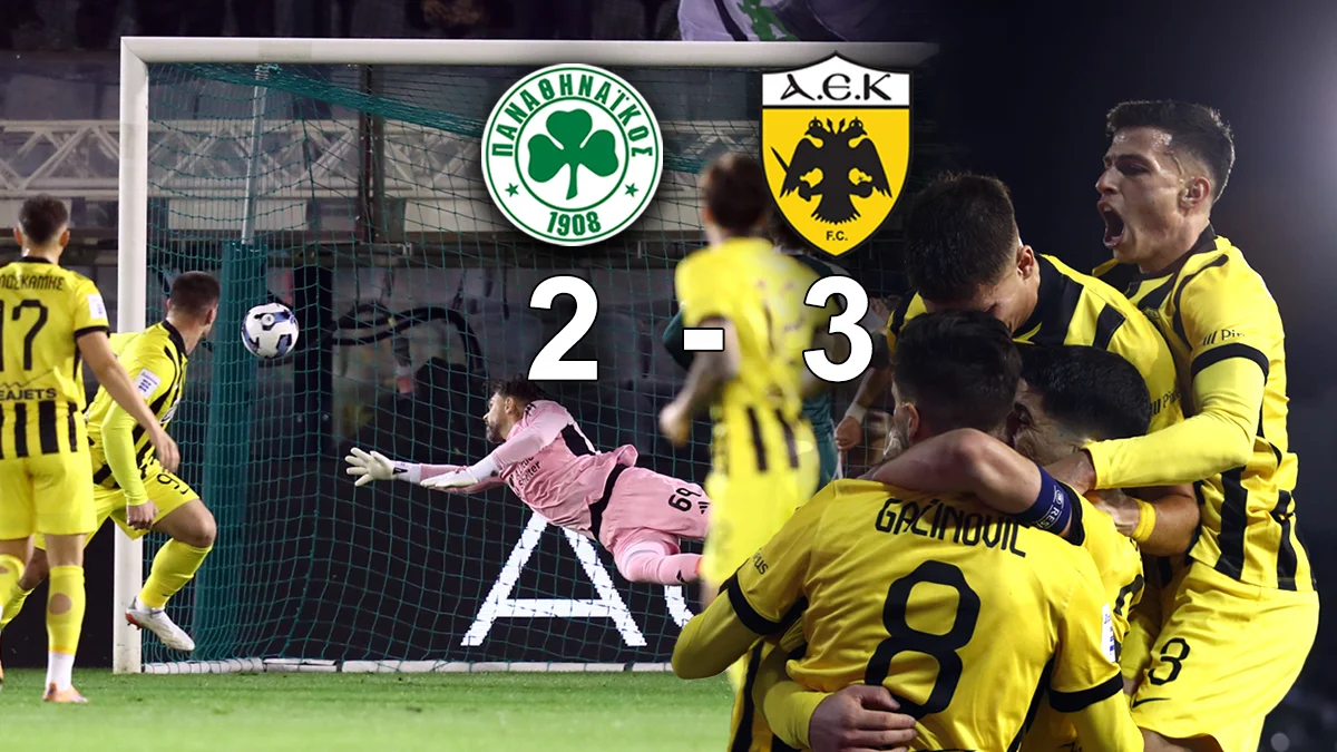 Ο Γιόβιτς ανέλαβε και πάλι την εκτέλεση και διαμόρφωσε το τελικό 3-2 για την ΑΕΚ, ολοκληρώνοντας ένα τρομερό προσωπικό χατ-τρικ, σ’ ένα ντέρμπι με φινάλε ακατάλληλο για… καρδιακούς.