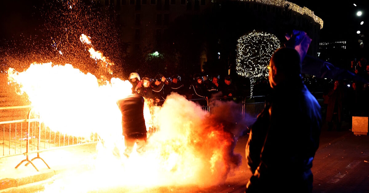 Κατά την πολιορκία του γραφείου του Αλβανού πρωθυπουργού, αργά χθες (22.12.2025) το βράδυ, άνδρες των ειδικών δυνάμεων της αστυνομίας σχημάτισαν κλοιό ασφαλείας γύρω από το κυβερνητικό κτίριο, αλλά δεν απώθησαν τους διαδηλωτές.