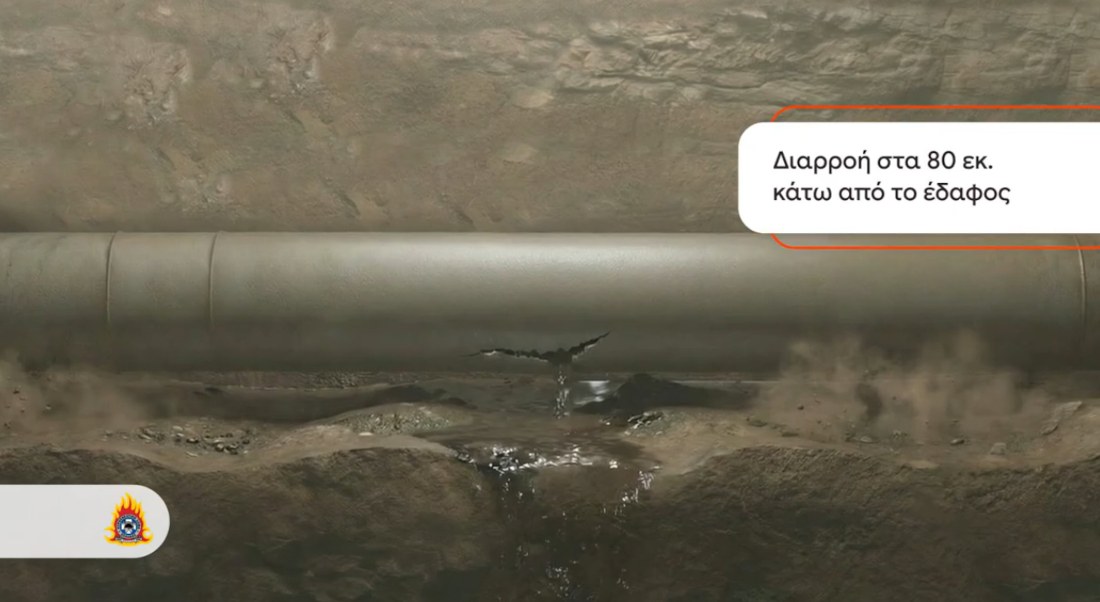 Κατόπιν εξειδικευμένων ελέγχων με χρήση αζώτου, διαπιστώθηκε διαρροή στο έδαφος, γεγονός που οδήγησε στη διενέργεια τομής και εκσκαφής σε βάθος περίπου 60 εκατοστών, όπου εντοπίστηκε εκτεταμένη διαρροή εντός του εδάφους.