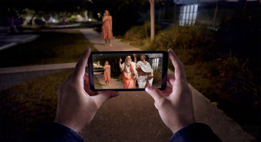 Η παρέμβαση που υλοποιείται από το Εθνικό Κέντρο Έρευνας Φυσικών Επιστημών «Δημόκριτος», αφορά στην εγκατάσταση στο νότιο τμήμα του αρχαιολογικού χώρου ενός περιπτέρου, το οποίο θα στεγάζει τέσσερις διαδραστικές οθόνες αφής, με πρόσβαση σε πολυμεσικές πληροφορίες (κείμενα, εικόνες, βίντεο, αναπαραστάσεις κ.α.). Η σύνθεση περιλαμβάνει τέσσερις ορθογώνιες μονάδες, καλυμμένες από κυματοειδές στέγαστρο. Η πρόσβαση στο περίπτερο γίνεται από τα άκρα, με ράμπες. Το έργο είναι αποτέλεσμα της συνεργασίας του ΕΚΕΦΕ «Δημόκριτος» με το αρχιτεκτονικό γραφείο Foster+Partners, το World Human Forum και του Υπουργείου Πολιτισμού. Την επιλογή του πληροφοριακού επιμελούνται διεθνούς κύρους ακαδημαϊκοί, επιστήμονες και καλλιτέχνες. Η ψηφιακή εγκατάσταση επιτρέπει την εύκολη ανανέωση και τον εμπλουτισμό του ενημερωτικού υλικού, ανάλογα με την πρόοδο της έρευνας.
