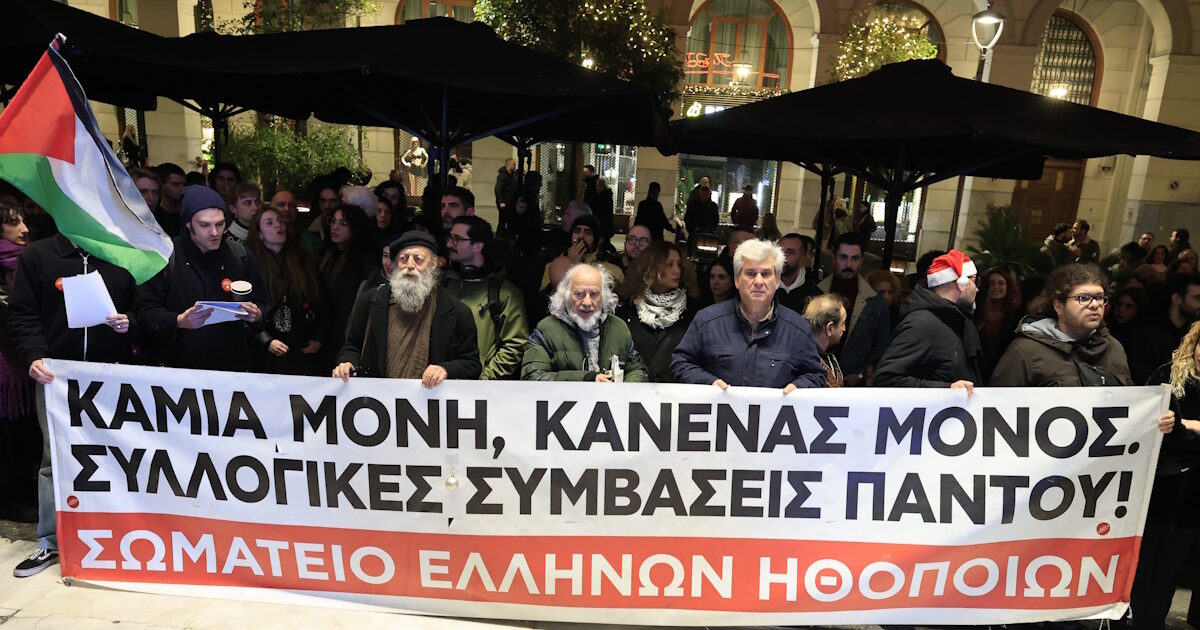 Μία διαφορετική «παράσταση» στήθηκε το βράδυ του Σαββάτου (27.12.2025) στη συμβολή των οδών Βουκουρεστίου και Πανεπιστημίου. Οι ηθοποιοί, αντί για το σανίδι, βγήκαν στους δρόμους, προχωρώντας σε απεργία.