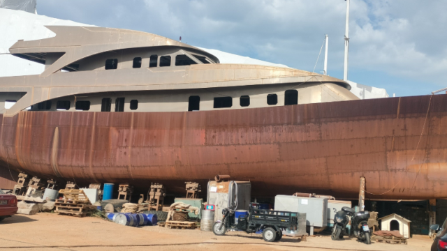 Ένα μηχανοκίνητο τουριστικό σκάφος που προοριζόταν για luxury yacht αλλά έχει εγκαταλειφθεί σε ναυπηγείο του Περάματος αναζητεί τον επόμενο ιδιοκτήτη του – Το σερί των άγονων σφυριών και ποια είναι η νέα τιμή πρώτης προσφοράς