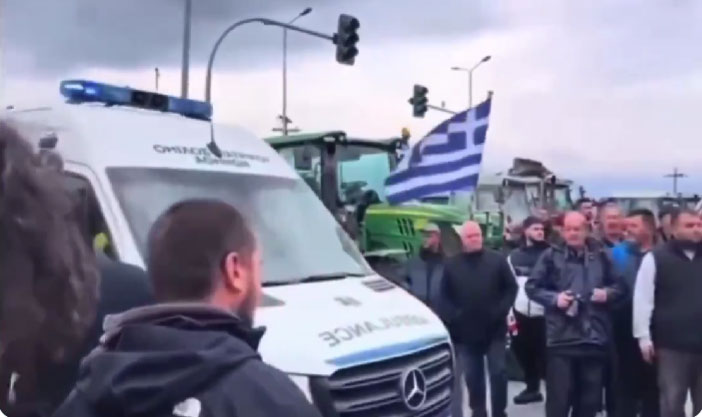 Ο δρόμος από τους αγρότες είναι ανοιχτός, ωστόσο ασθενοφόρο που μεταφέρει ασθενή και με τη σειρήνα να ουρλιάζει επιχειρεί να περάσει, αλλά ο δρόμος είναι φραγμένος από τις κλούβες της Ελληνικής Αστυνομίας. Το θέμα φυσικά δεν «παίζει» σε κανένα ΜΜΕ…