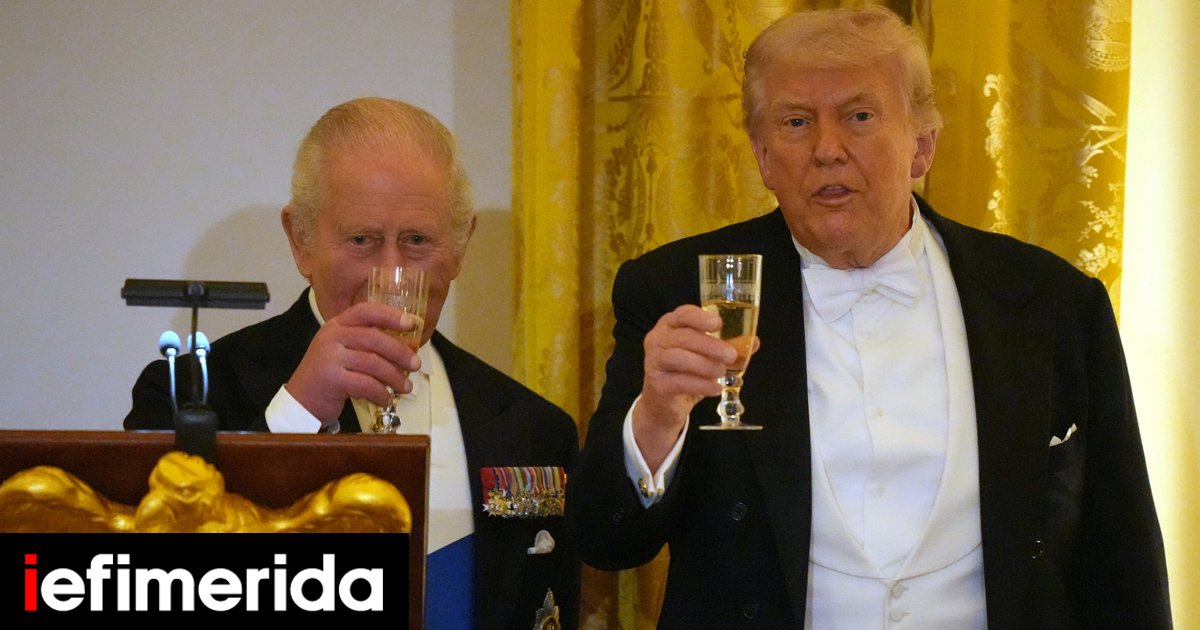Η ατμόσφαιρα στον Λευκό Οίκο ήταν γεμάτη λάμψη, καθώς το ζεύγος Τραμπ υποδέχτηκε τον Βασιλιά Κάρολο και τη Βασίλισσα Καμίλα για επίσημο δείπνο.