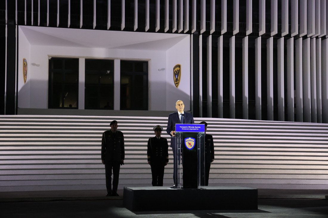 Ο Νίκος Δένδιας έκανε λόγο για ένα «αναγεννημένο υπουργείο Άμυνας» όπου «κάθε κτήριο συμβολίζει μια αρχιτεκτονική και μια εποχή και το κτήριο του υπουργείου Άμυνας από τη δεκαετία του 50′ δεν διεκδικούσε δάφνες αρχιτεκτονικού σχεδιασμού».