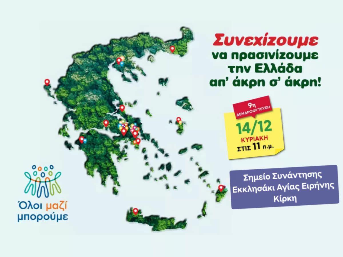 Το «Όλοι Μαζί Μπορούμε» και ο ΣΚΑΪ πραγματοποιούν την 9η δενδροφύτευση της σεζόν, την Κυριακή 14 Δεκεμβρίου, στην Kίρκη του Δήμου Αλεξανδρούπολης, συνεχίζοντας την προσπάθεια να πρασινίσει την Ελλάδα από άκρη σε άκρη.
