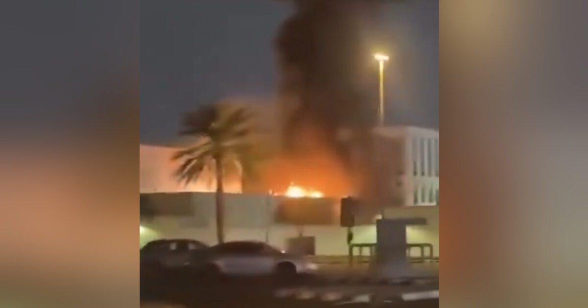 Πυκνός καπνός κάλυψε τον ουρανό στην περιοχή που βρίσκεται το αμερικανικό προξενείο στο Ντουμπάι, με τις φλόγες να υψώνονται, δημιουργώντας σκηνικό καταστροφής.