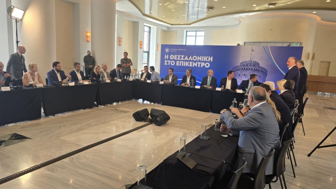 Στις 10.25 άρχισε η σύσκεψη του πρωθυπουργού, Κυριάκου Μητσοτάκη, με τους βουλευτές της Α’ και Β’ Θεσσαλονίκης, αλλά και της Κεντρικής Μακεδονίας, στο κεντρικό κτήριο του Μεγάρου Μουσικής.