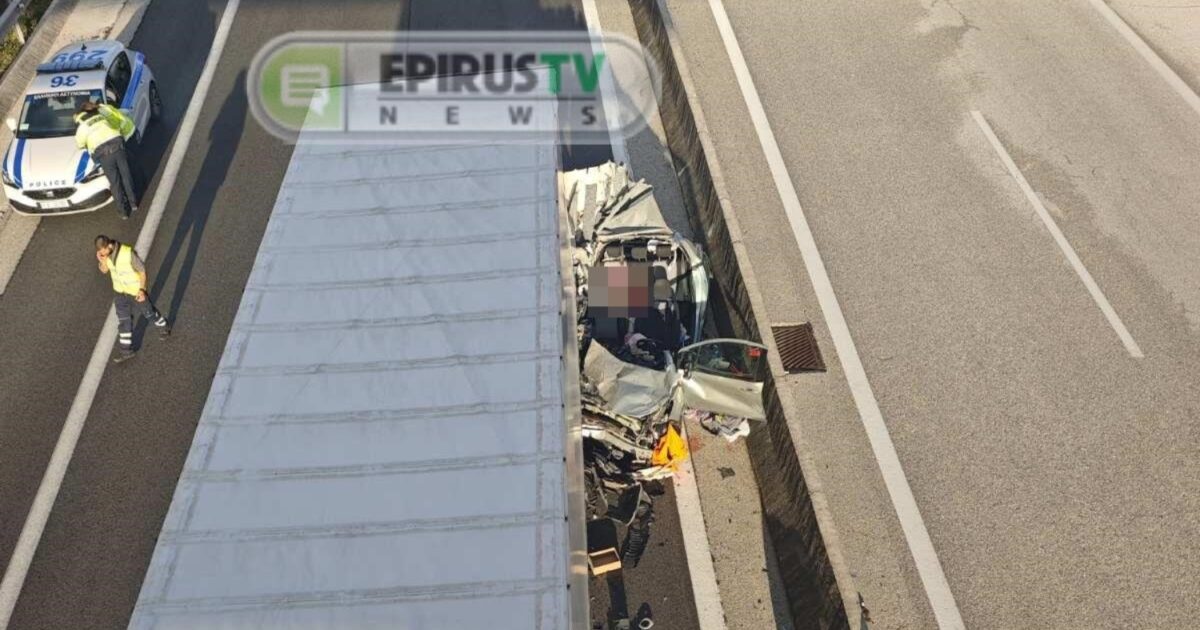 Το αυτοκίνητο μετά τη σύγκρουση με τη νταλίκα / epirus-tv-news.gr
