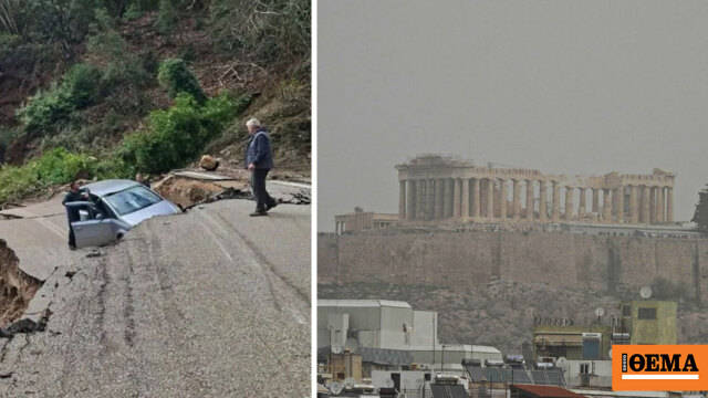 Απόκοσμες εικόνες από την Κρήτη, ενώ η Ακρόπολη κρύφτηκε από το παχύ στρώμα σκόνης που «κάθισε» και πάνω από την Αττική, μεγάλες ζημιές από κατολισθήσεις σε Ήπειρο και Πελοπόννησο