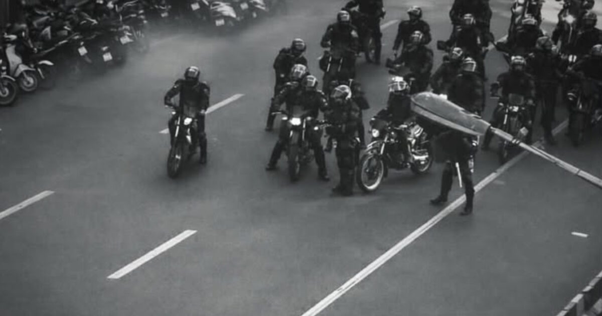 Ο διαδηλωτής βρίσκεται απέναντι στις δυνάμεις της αστυνομίας στο Ιράν κατά την διάρκεια μεγάλων συγκεντρώσεων των τελευταίων ημερών και μεταδίδεται από τα social media με πολλούς χρήστες να κάνουν λόγο για μια «ιρανική Τιενανμέν».
