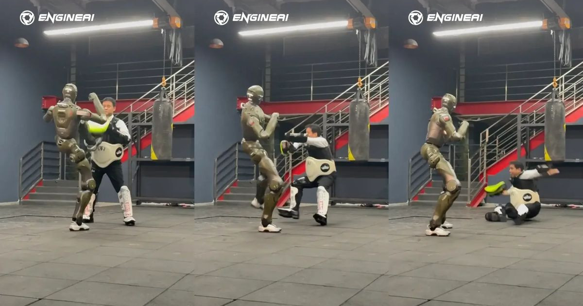 Για να διαψεύσει τους σκεπτικιστές, ο CEO της εταιρείας, Zhao Tongyang, αποφάσισε να βάλει κυριολεκτικά το σώμα του μπροστά. Στο νέο βίντεο, ο Zhao εμφανίζεται φορώντας προστατευτικό εξοπλισμό στο στήθος, να στέκεται απέναντι στο μεταλλικό δημιούργημά του. Το T800, εκτελώντας μια μπροστινή κλωτσιά ακριβείας, χτυπά τον δημιουργό του στο στήθος, στέλνοντάς τον στο έδαφος. Ο Zhao, αν και σοκαρισμένος από τη δύναμη, σηκώνεται γελώντας και χαρακτηρίζει το χτύπημα «υπερβολικά βίαιο», επιβεβαιώνοντας όμως με τον πιο πειστικό τρόπο ότι το ρομπότ είναι πέρα για πέρα αληθινό.