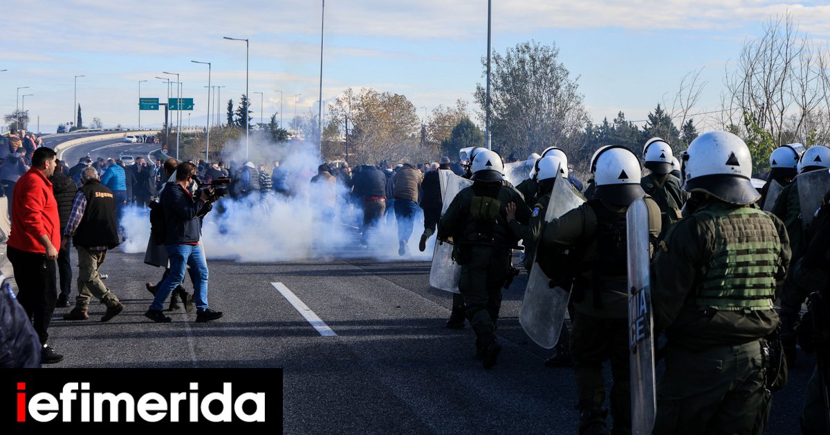 Ένταση και χημικά στο μπλόκο των αγροτών στη Λάρισα / Φωτογραφία: Eurokinissi