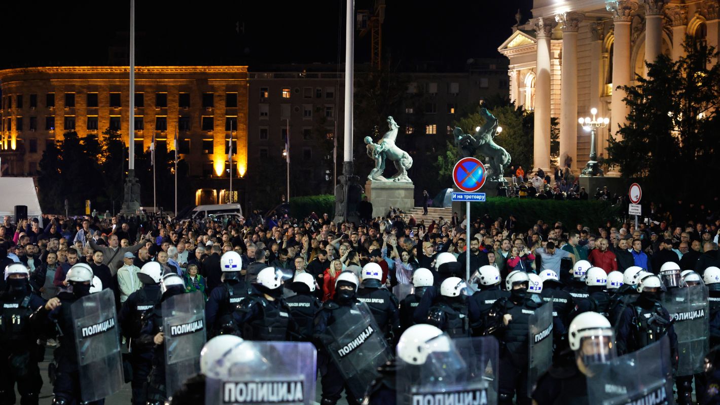 Σκηνές έντασης επικρατούν από τις πρωινές ώρες της Τετάρτης (5/11), έξω από το κοινοβούλιο της Σερβίας, στο Βελιγράδι, όπου το κυβερνών κόμμα του Αλεξάνταρ Βούτσιτς, το Σερβικό Προοδευτικό Κόμμα (SNS), διοργανώνει το απόγευμα μεγάλη συγκέντρωση υποστηρικτών για το δυστύχημα στο Νόβι Σαντ.