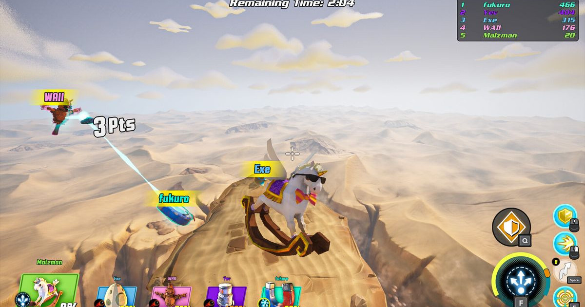 Η μάχη διεξάγεται με τη χρήση 22 διαφορετικών in-game αντικειμένων επίθεσης και άμυνας. Ο οπλισμός ποικίλλει από εξωφρενικές μαγνητικές νάρκες που έλκουν τους αντιπάλους, μέχρι ισχυρά εκρηκτικά που προκαλούν καταστροφές ευρείας κλίμακας στην αρένα. Οι χάρτες είναι σχεδιασμένοι για να φιλοξενούν έως και 8 παίκτες ταυτόχρονα. Για την εξυπηρέτηση των αναγκών της δικτύωσης, η Barrel Roll Games έχει ενσωματώσει έναν παραδοσιακό server browser, ο οποίος επιτρέπει την άμεση εύρεση ενεργών αγώνων ή τη γρήγορη δημιουργία ιδιωτικών lobbies για παιχνίδι αποκλειστικά με φίλους.