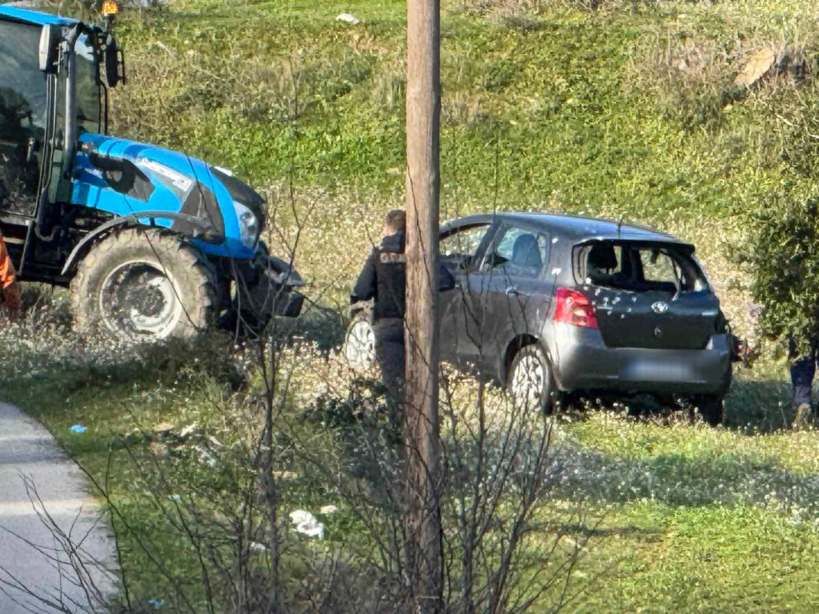Με τη συνδρομή τρακτέρ απομακρύνεται το όχημα του θύματος του φονικού στη Μεσάριστα Αγρινίου