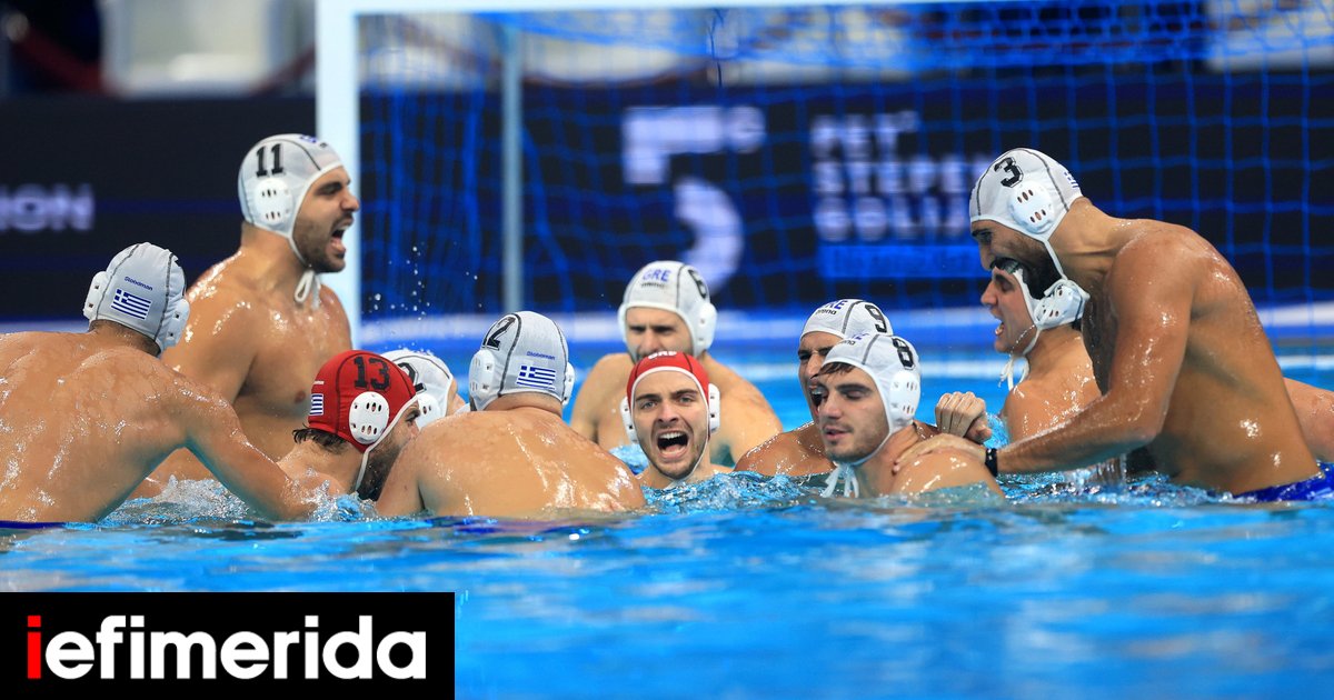 H Εθνική ομάδα πόλο των ανδρών πανηγυρίζει τη νίκη επί της Κροατίας / Φωτογραφία: intimenews