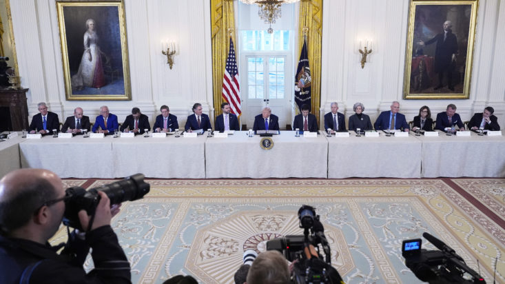 Κατά τη διάρκεια της συνάντησης, ο Ντόναλντ Τραμπ αιφνιδίασε τους παρευρισκόμενους, όταν σηκώθηκε ξαφνικά από την καρέκλα λέγοντας πως ήθελε να θαυμάσει τη θέα της υπό κατασκευή αίθουσας χορού, η οποία θα διαθέτει αλεξίσφαιρα τζάμια και θωράκιση κατά drones.