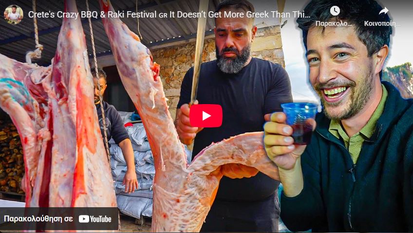 Σπιτικό ποτό και ψητό αρνί συνοδευόμενα από κρητικά τραγούδια και χορούς γεμίζουν τη νύχτα. Αυτό είναι ένα βίντεο YouTube που δεν έχει φτιάξει κανείς πριν!” ανέφερε ο ίδιος στο κανάλι του.