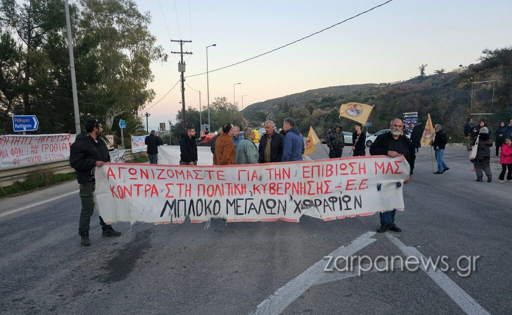 Παράλληλα συμμετέχουμε στις δράσεις των αγροτών στο μπλόκο των Μεγάλων Χωραφιών στα Χανιά: