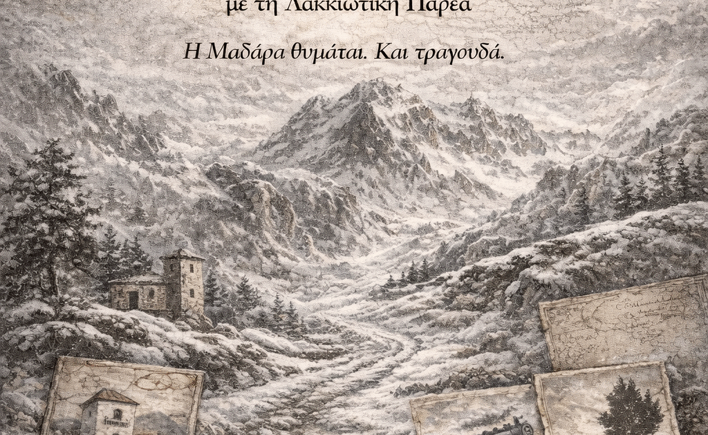 Οι Εκδόσεις Ραδάμανθυς (Γεωργίου Ξέπαπα 7, στα Χανιά) διοργανώνουν την Τετάρτη 18 Φεβρουαρίου 2026, στις 7 μ.μ., μια ξεχωριστή πολιτιστική εκδήλωση με τίτλο: «Ταξιδεύοντας στις ρίζες της Μαδάρας», ένα λογοτεχνικό και μουσικό αφιέρωμα αφιερωμένο στη μνήμη, τον τόπο και τη φωνή της κρητικής γης. Στο επίκεντρο της βραδιάς βρίσκεται η Μαδάρα, όχι μόνο ως γεωγραφικός τόπος, αλλά ως σύμβολο ιστορίας, συλλογικής μνήμης και βιωμένης εμπειρίας. Η λογοτεχνική αφήγηση συνομιλεί με το ριζίτικο τραγούδι, δημιουργώντας μια τελετουργική εναλλαγή λόγου και μουσικής.