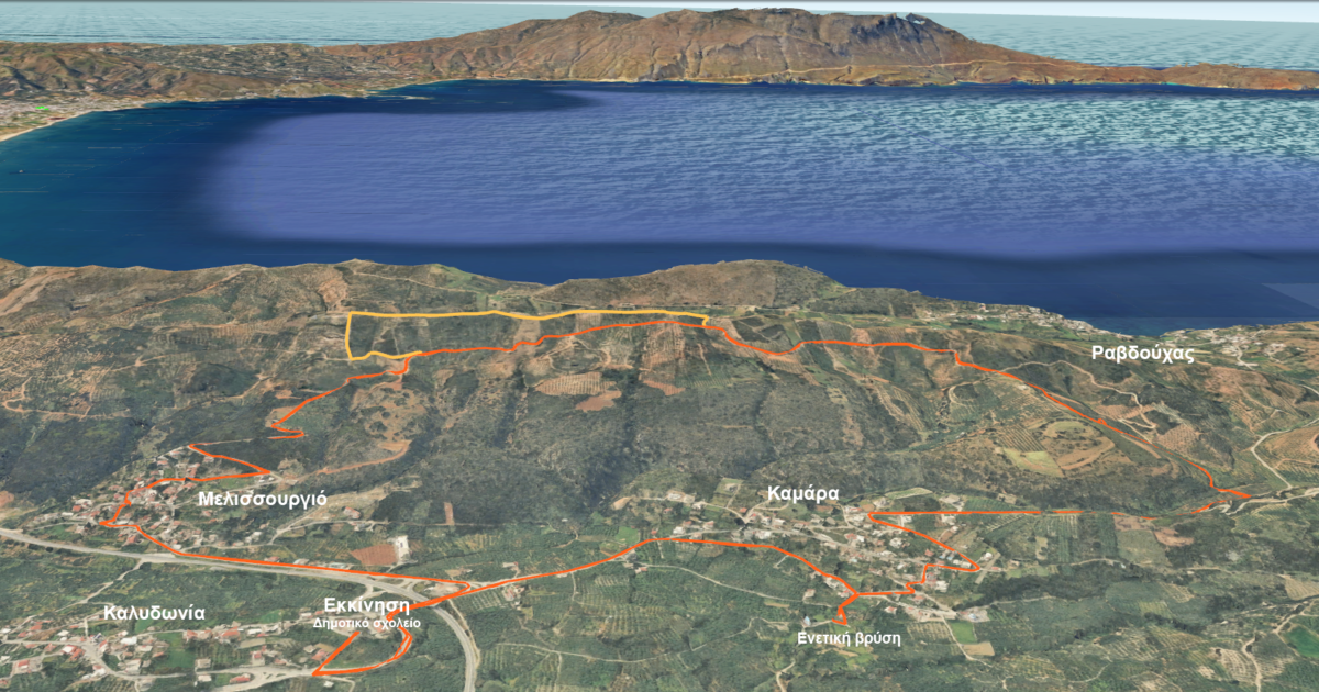 Η διαδρομή περιλαμβάνει διέλευση από τον γραφικό οικισμό του Μελισουργιού, με την παραδοσιακή βρύση και τα χαρακτηριστικά σοκάκια, ενώ στη συνέχεια οι πεζοπόροι θα ανέβουν στην κορυφογραμμή, απολαμβάνοντας πανοραμική θέα στον κόλπο των Χανίων και της Κισσάμου.