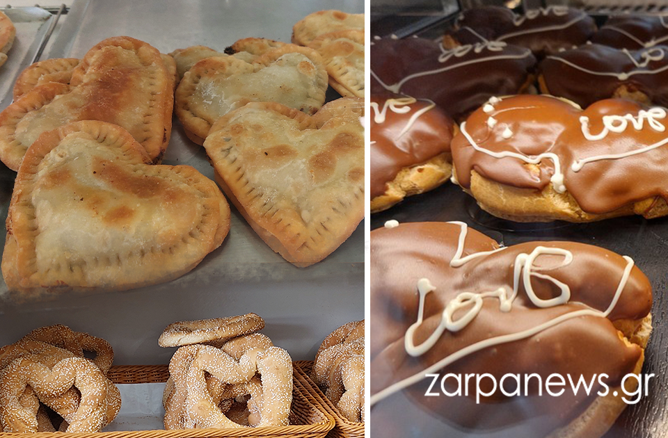 Από την κλασική πάστα “lacta” μέχρι κουλούρι σε σχήμα καρδιάς, αλλά και καλιτσούνια, μαραθόπιτες και εκλέρ, ευφραίνουν την καρδιά και γεμίζουν με αγάπη το στομάχι των ερωτευμένων στα Χανιά.