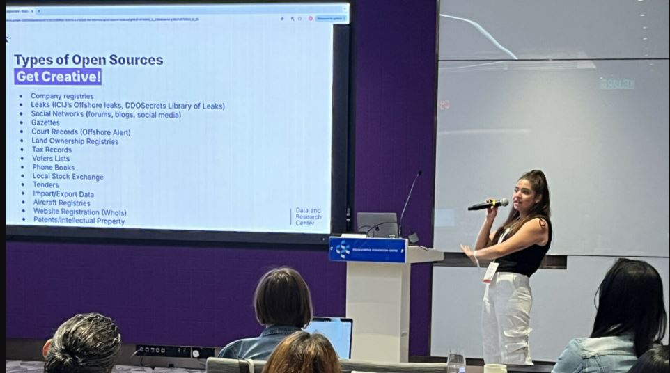 Μια απίθανη πλοήγηση στους λαβυρίνθους της αναζήτησης του χρήματων, επεφύλασε η Καρίνα Σεντρόφσκι (Karina Shedrofsky), Συνιδρύτρια και Διευθύντρια Έρευνας στο DARC, στους υποτρόφους του iMEdD και του GIJC. κατά το εργαστήριο της προσυνεδριακής ημέρας.