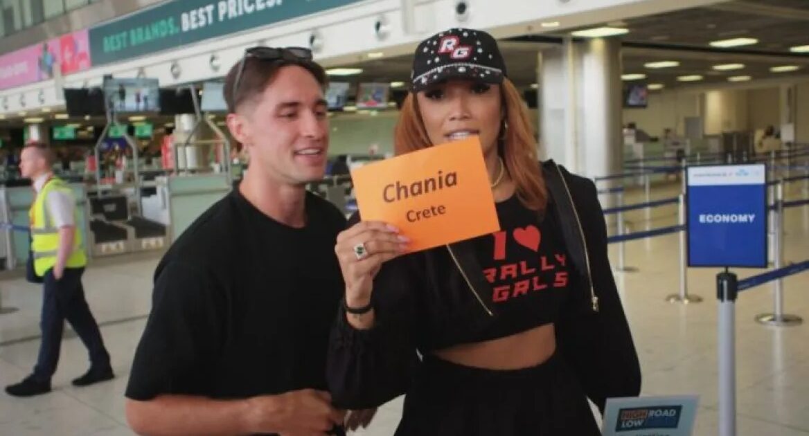 Πλάνο από το επεισόδιο της εκπομπής «High Road / Low Road» του ιρλανδικού καναλιού RTÉ One για τα Χανιά: Οι συμμετέχοντες Greg O’Shea και Erica Cody τη στιγμή που πληροφορούνται τον προορισμό του ταξιδιού τους.