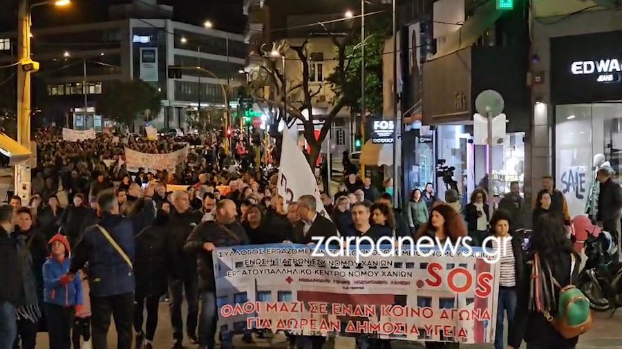 Το σωματείο εργαζομένων του Γενικού Νοσοκομείου Χανίων οργάνωσε χθες βράδυ κινητοποίηση με τη συμμετοχή χιλιάδων πολιτών για την ανάδειξη της υποστελέχωσης σε βασικούς τομείς και υπηρεσίες του νοσοκομείου που ταλαιπωρούν εργαζόμενους και πολίτες. Στη συγκέντρωση παρευρέθηκαν και χαιρέτισαν ο πρόεδρος της ΠΟΕΔΗΝ, ο αντιπρόεδρος της ΠΟΕΔΗΝ όπως και όλοι οι φορείς της πόλης.