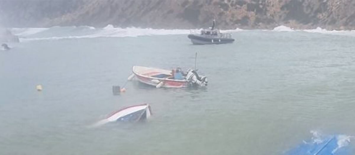 Τα κύματα έχουν τόση δύναμη, που παρέσυραν μια βάρκα μεταναστών, η οποία, αφού χτύπησε σε ένα ιστιοπλοϊκό που ήταν στη στεριά, σταμάτησε μόλις ένα μέτρο από την πόρτα ενός από τα σπιτάκια που μένουν οι μετανάστες, οι οποίοι λόγω απαγορευτικού παραμένουν από το περασμένο Σάββατο στην Γαύδο.