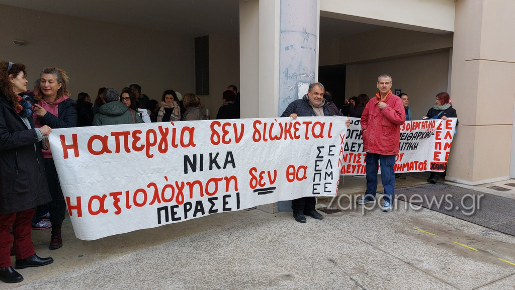 Τη στήριξή τους σε τρεις συναδέλφους τους που διώκονται ποινικά επειδή συμμετείχαν στην απεργία κατά της αξιολόγησης με την δίκη να ήταν προγραμματισμένη για σήμερα, εξέφρασαν ο Σύνδεσμος Εκπαιδευτικών Πρωτοβάθμιας Εκπαίδευσης Χανίων και η ΕΛΜΕ Χανίων, με συγκέντρωση διαμαρτυρίας στα γραφεία της Διεύθυνσης Πρωτοβάθμιας και Δευτεροβάθμιας Εκπαίδευσης Χανίων.