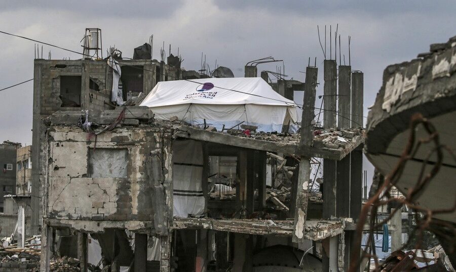 Στον αυτοσχέδιο καταυλισμό της Χαν Γιουνίς, άνδρες προσπαθούσαν με φτυάρια να απομακρύνουν το νερό και τη λάσπη που εμπόδιζαν την πρόσβαση στις σκηνές, ενώ άλλοι τοποθετούσαν σακιά με άμμο για να προστατευτούν από τους ισχυρούς ανέμους.
