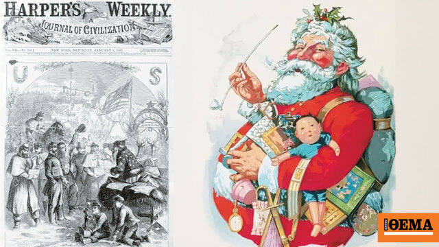 Αυτός ο Αγιος Βασίλης φέρει τη σχεδιαστική υπογραφή του βαυαρικής καταγωγής Αμερικανού σπουδαίου σκιτσογράφου Τόμας Ναστ, ο οποίος θεωρείται ο «πατέρας» της αμερικάνικης γελοιογραφίας.