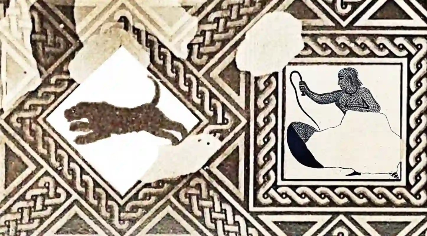 Τμήμα του μωσαϊκού που δείχνει τη λεοπάρδαλη και τη γυναίκα. Πηγή: A. Manas, 2026