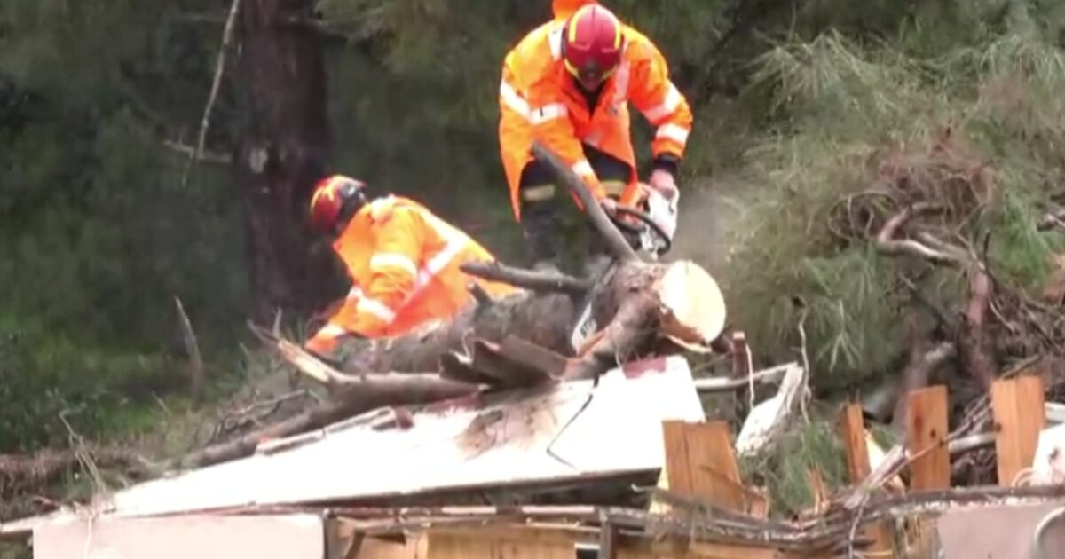 Συνεργεία προσπαθούν να απομακρύνουν δέντρο που έπεσε σε σπίτι στο Κατάκολο