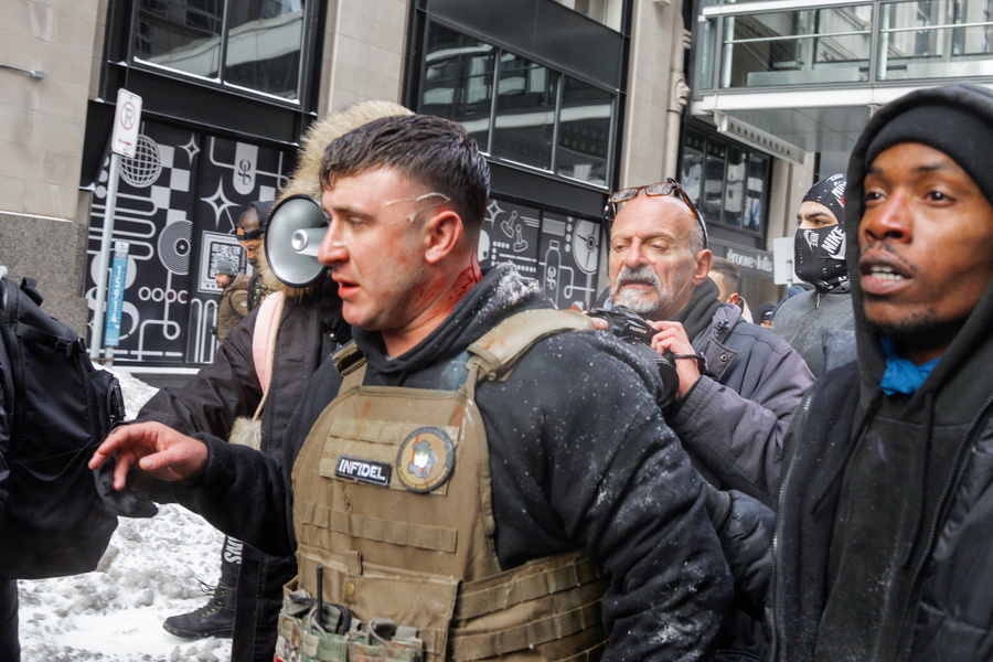 Την Κυριακή (18/1) ο Τζέικ Λανγκ, νεοναζί influencer στο διαδίκτυο και ένας από τους περισσότερους από 1.500 ανθρώπους που έλαβαν χάρη από τον Ντόναλντ Τραμπ μετά τις ποινικές τους καταδίκες που σχετίζονται με την επίθεση της 6ης Ιανουαρίου στο Καπιτώλιο των ΗΠΑ, δέχτηκε μπαλόνια με κρύο νερό, ενώ διοργάνωσε μαζί με 10 άλλους, αντιδιαδήλωση έξω από το δημαρχείο της Μινεάπολης υποστηρίζοντας των ICE και τις απελάσεις.