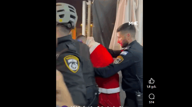 Πιο συγκεκριμένα, ισραηλινοί αστυνομικοί διέκοψαν μια εκδήλωση για τον εορτασμό των Χριστουγέννων την Κυριακή, κατάσχεσαν εξοπλισμό και συνέλαβαν έναν Παλαιστίνιο που είχε ντυθεί Άγιος Βασίλης, καθώς και έναν DJ και έναν πλανόδιο πωλητή.