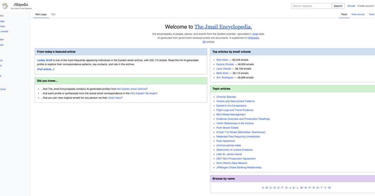 Ενώ το Jmail επέτρεπε στους χρήστες να αναζητούν μεμονωμένα emails, το Jikipedia πηγαίνει ένα βήμα παραπέρα. Λειτουργεί ακριβώς όπως η Wikipedia, αλλά με αποκλειστικό περιεχόμενο που προέρχεται από τα δικαστικά έγγραφα και την ηλεκτρονική αλληλογραφία του Έπσταϊν.