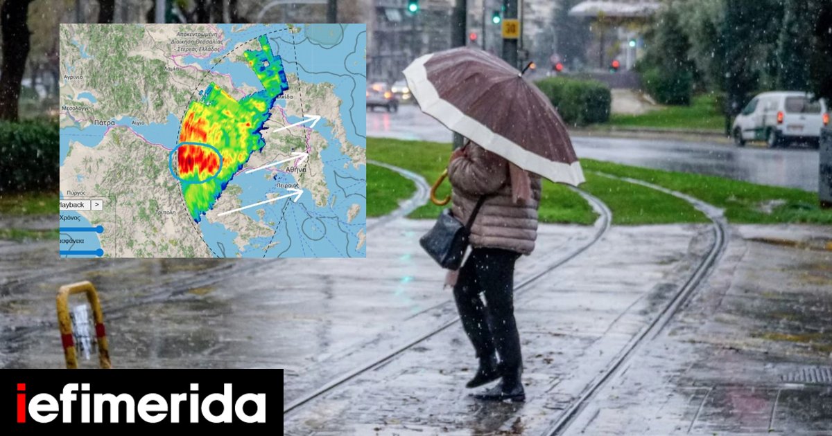 Όπως φαίνεται και από το Doppler X-band, το Μετεωρολογικό Ραντάρ διπλής πόλωσης, που παρέχει χάρτες βροχόπτωσης με υψηλή χωροχρονική ανάλυση (από το Εθνικό Αστεροσκοπείο Αθηνών), η σχεδόν ανατολική κίνηση του “συστήματος” θα φέρει τα φαινόμενα και στην Αττική.