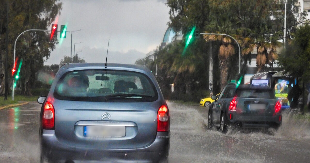 * Μείνετε μέσα και ανάψτε τα προειδοποιητικά φώτα στάσης (φώτα έκτακτης ανάγκης) μέχρι να κοπάσει η καταιγίδα.