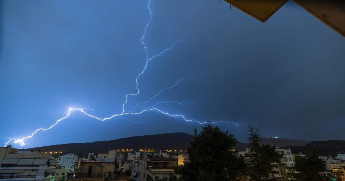 Το μοναδικό στιγμιότυπο τράβηξε ο Θάνος Μανώλης και το δημοσίευσε στα social media του Forecast Weather Greece. «Ανάποδος κεραυνός με θέα τον Υμηττό», αναγράφεται στη λεζάντα της ανάρτησης.