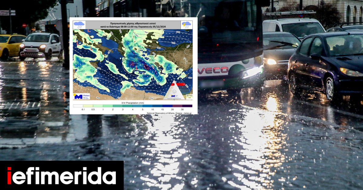 Από το πρωί, ισχυρές βροχές και καταιγίδες εκδηλώνονται στα νοτιοδυτικά και στη συνέχεια αναμένεται η κακοκαιρία να περάσει στην Κρήτη, το Νότιο Ιόνιο, την Πελοπόννησο και τις Κυκλάδες. Από το μεσημέρι τα φαινόμενα θα επηρεάσουν και την Κεντρική και Ανατολική Στερεά (συμπεριλαμβανομένης της Αττικής), την Εύβοια, τις Σποράδες και σταδιακά τη Θεσσαλία. Χαλαζοπτώσεις θα σημειωθούν στην περιοχή της Κρήτης.