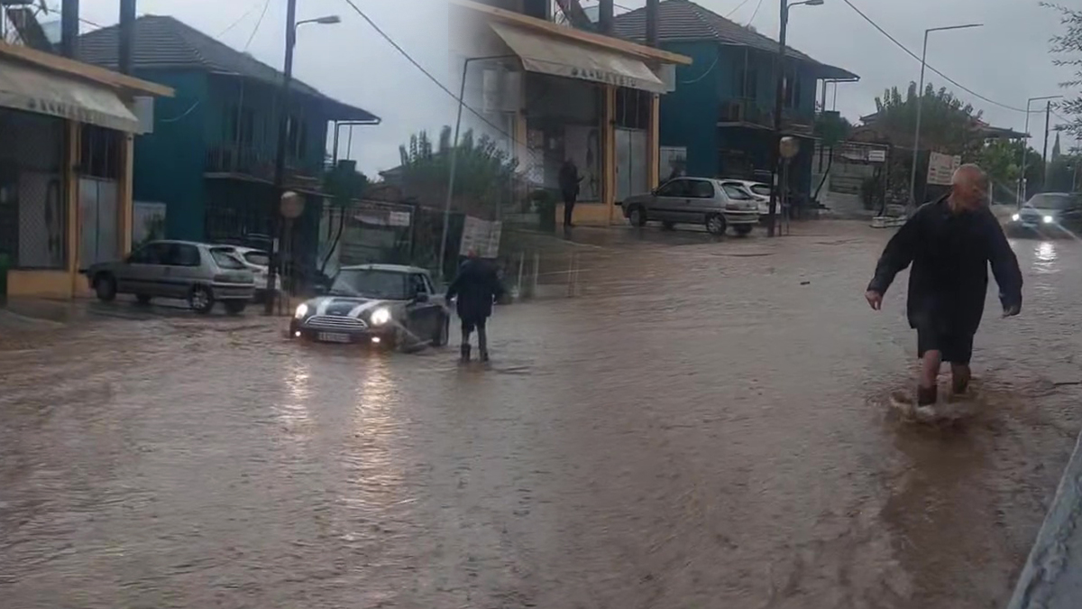 Στον Πλάτανο του Γυθείου, η έντονη βροχή έχει μετατρέψει σε χειμάρρους τις οδούς, προκαλώντας σημαντικές ζημιές στην περιοχή, ενώ έχουν πλημμυρίσει σπίτια και καλλιέργειες.