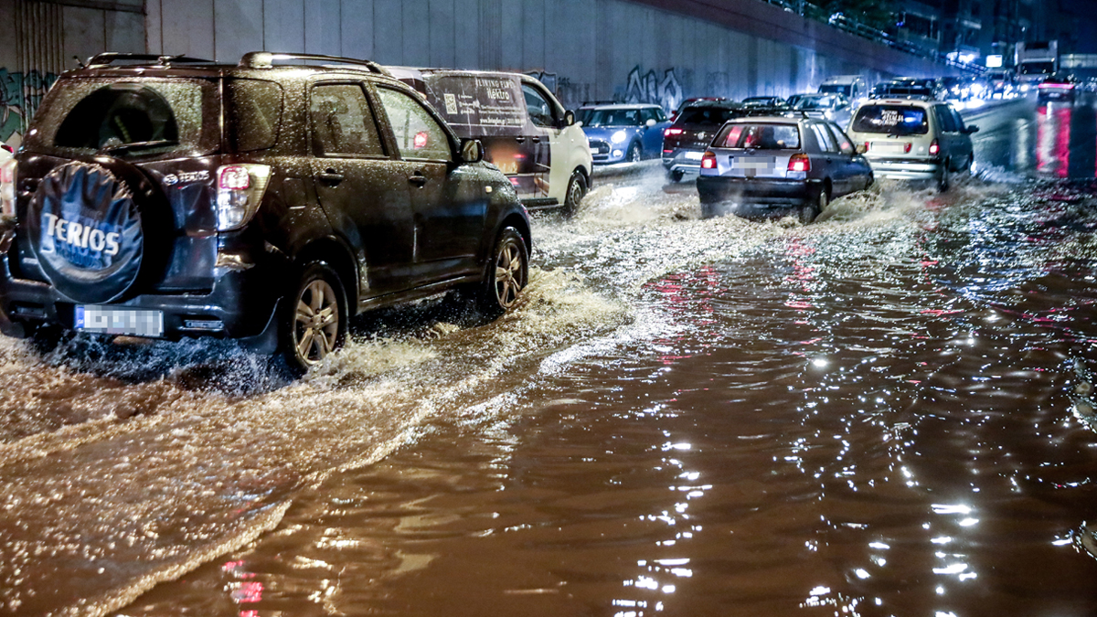 Σε ποτάμια έχουν μετατραπεί οι δρόμοι γύρω από το Μοναστηράκι στο κέντρο της Αθήνας. 9:37