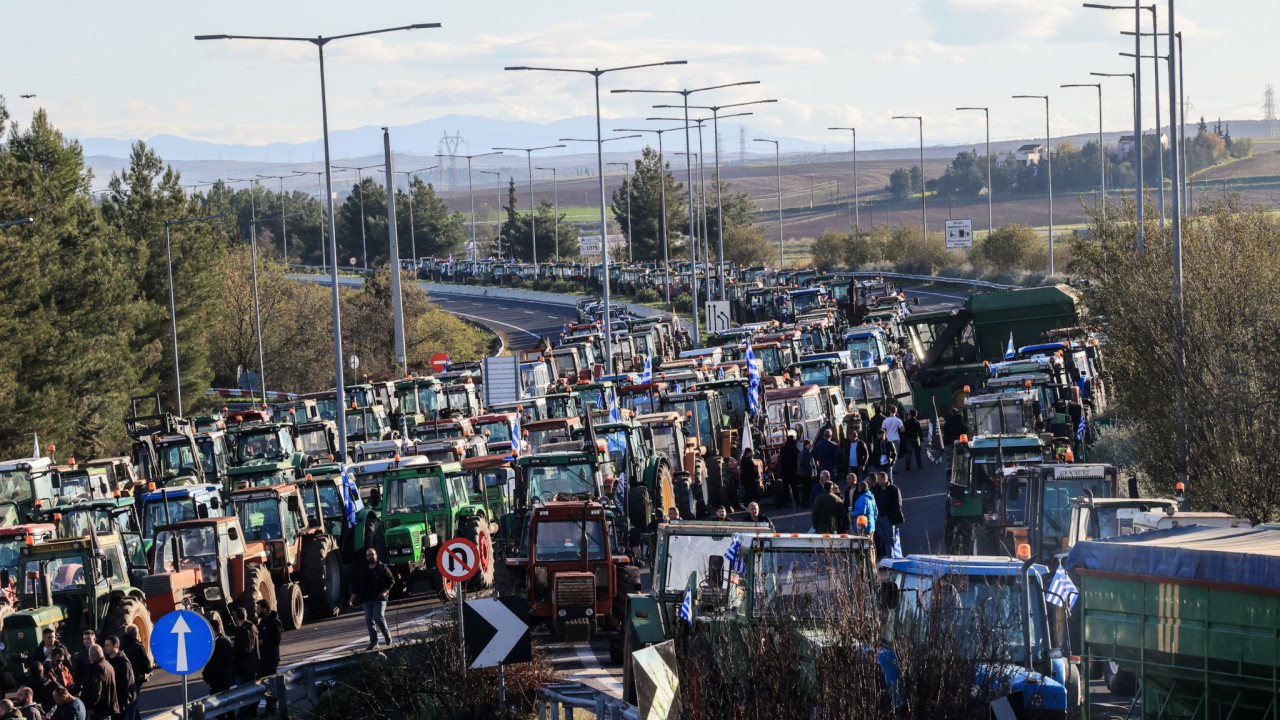 Τα τρακτέρ παραμένουν πάνω στον αυτοκινητόδρομο και η κυκλοφορία έχει διακοπεί.