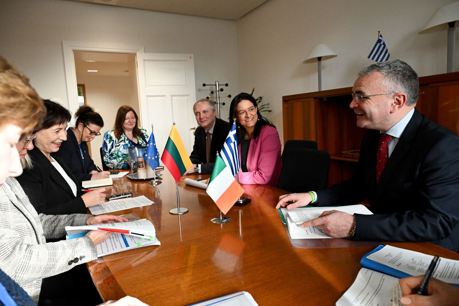Στο περιθώριο του Συμβουλίου, η Υπουργός συμμετείχε σε τριμερή συνάντηση με τους ομολόγους της, τον Υπουργό Κοινωνικής Προστασίας της Ιρλανδίας, Ντάρα Κάλιερι και την Υπουργό Κοινωνικής Ασφάλισης και Εργασίας της Λιθουανίας, Γιουράτε Ζάιλσκίενε, χώρες που προηγούνται της Ελλάδας στη σειρά ανάληψης της Προεδρίας του Συμβουλίου της ΕΕ.